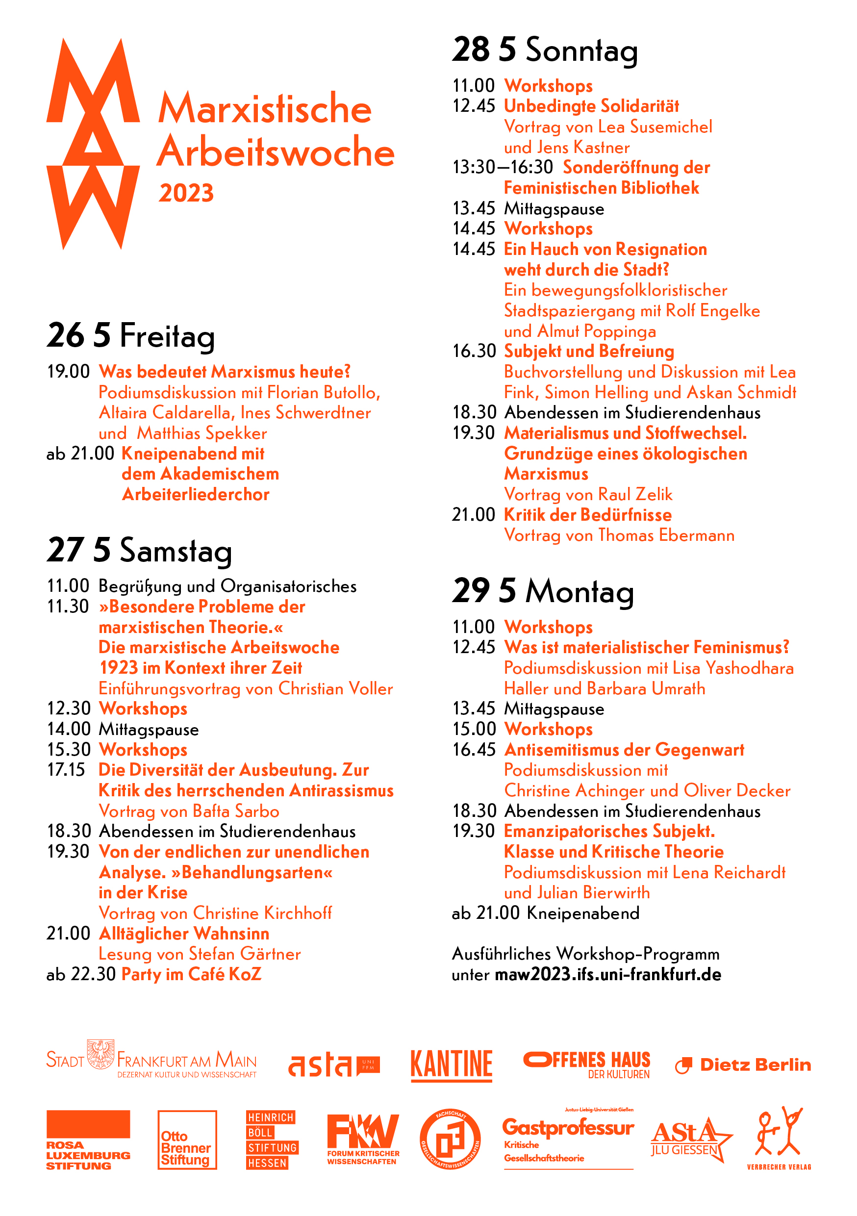 Alle Veranstaltungen des Hauptprogramms finden im Festsaal des Studierendenhauses auf dem Campus Bockenheim statt.